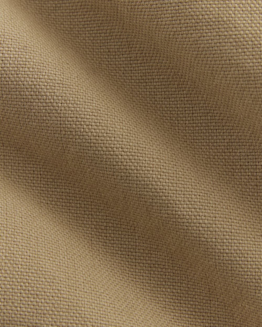 This piece features a cord collar. button-front closure. and two front pockets in durable organic cotton canvas.