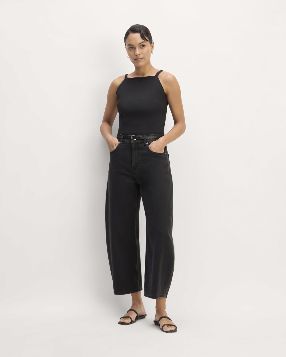 This piece features a high neck. sleeveless. and cropped length. with waist and bust darts. made with our dream organic cotton and TENCEL??Modal blend.