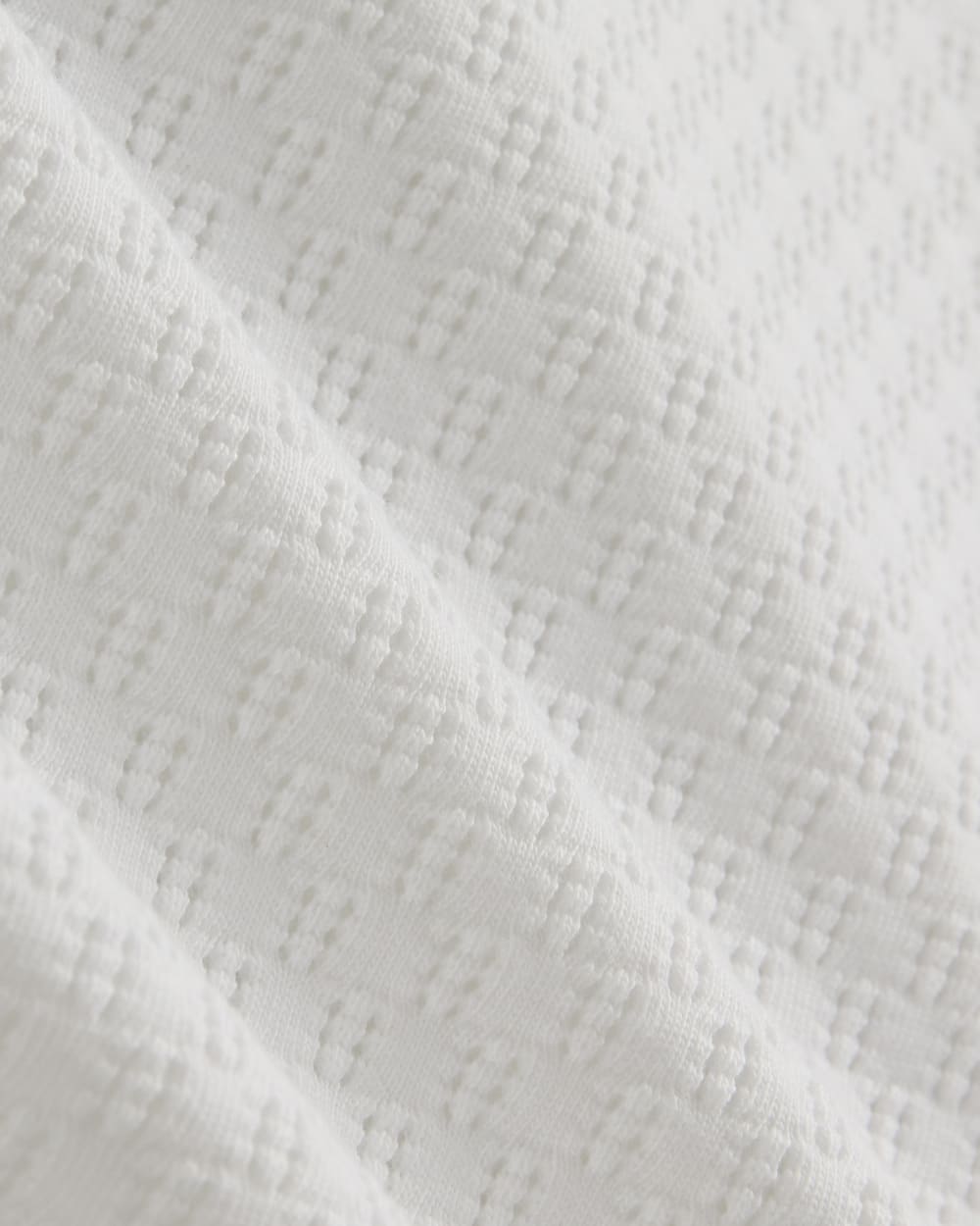 We took a classic crew silhouette. gave it a slim fit. and updated in our soft pointelle fabric. Hitting at the hip. tuck it in. belt it. untuck it. it’s here to bring a little extra texture and vibe to any look you got.