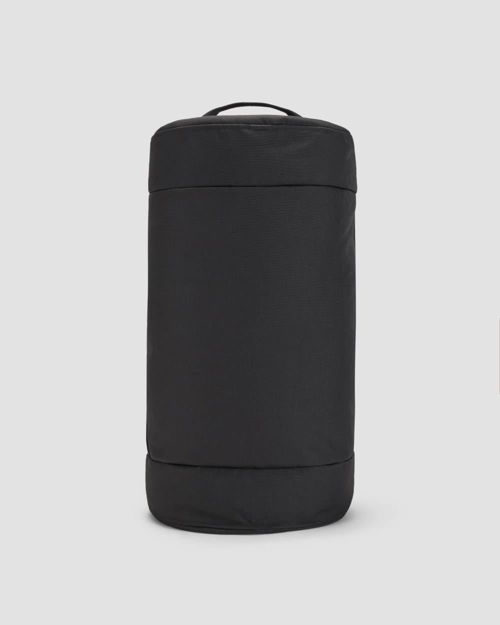 It features two padded. detachable shoulder straps. an adjustable chest buckle. shorter handles on shoulder straps. handles on each end of pack. external zipper pockets. side compartment. main compartment with zippered mesh pocket on flap underside. and four internal mesh slip pockets. Made with GRS-certified recycled polyester.