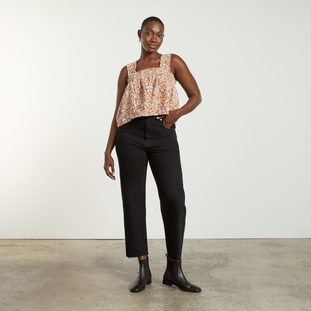 The Smocked Linen Cami has ultra-feminine features like a ruffled neckline and sleeves with a billowy shape that pairs perfectly with any high-rise bottom. Plus. it’s made of 100% linen which makes it more wrinkle resistant. extra breathable. and ideal for warm-weather days.